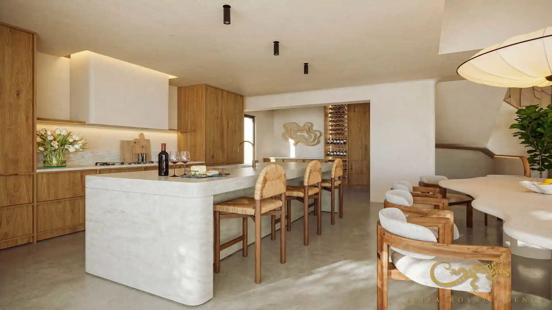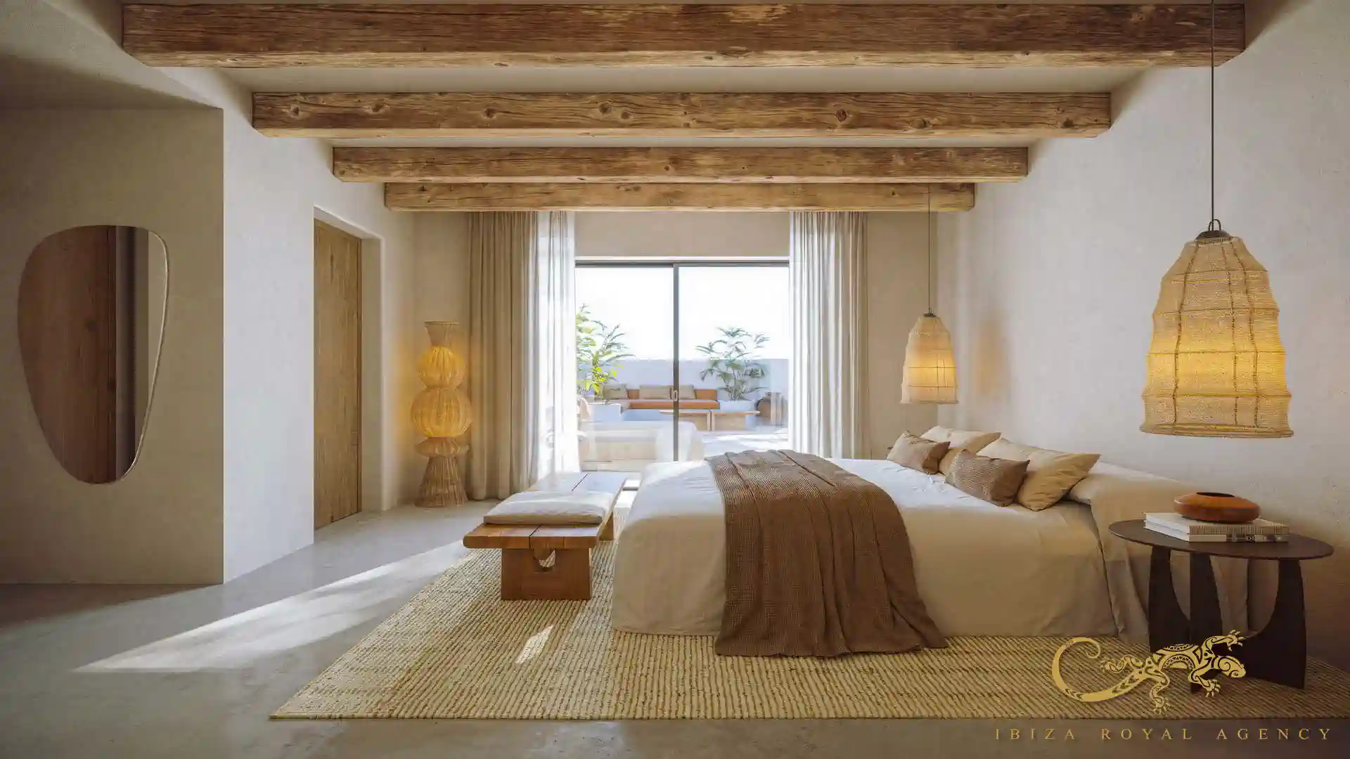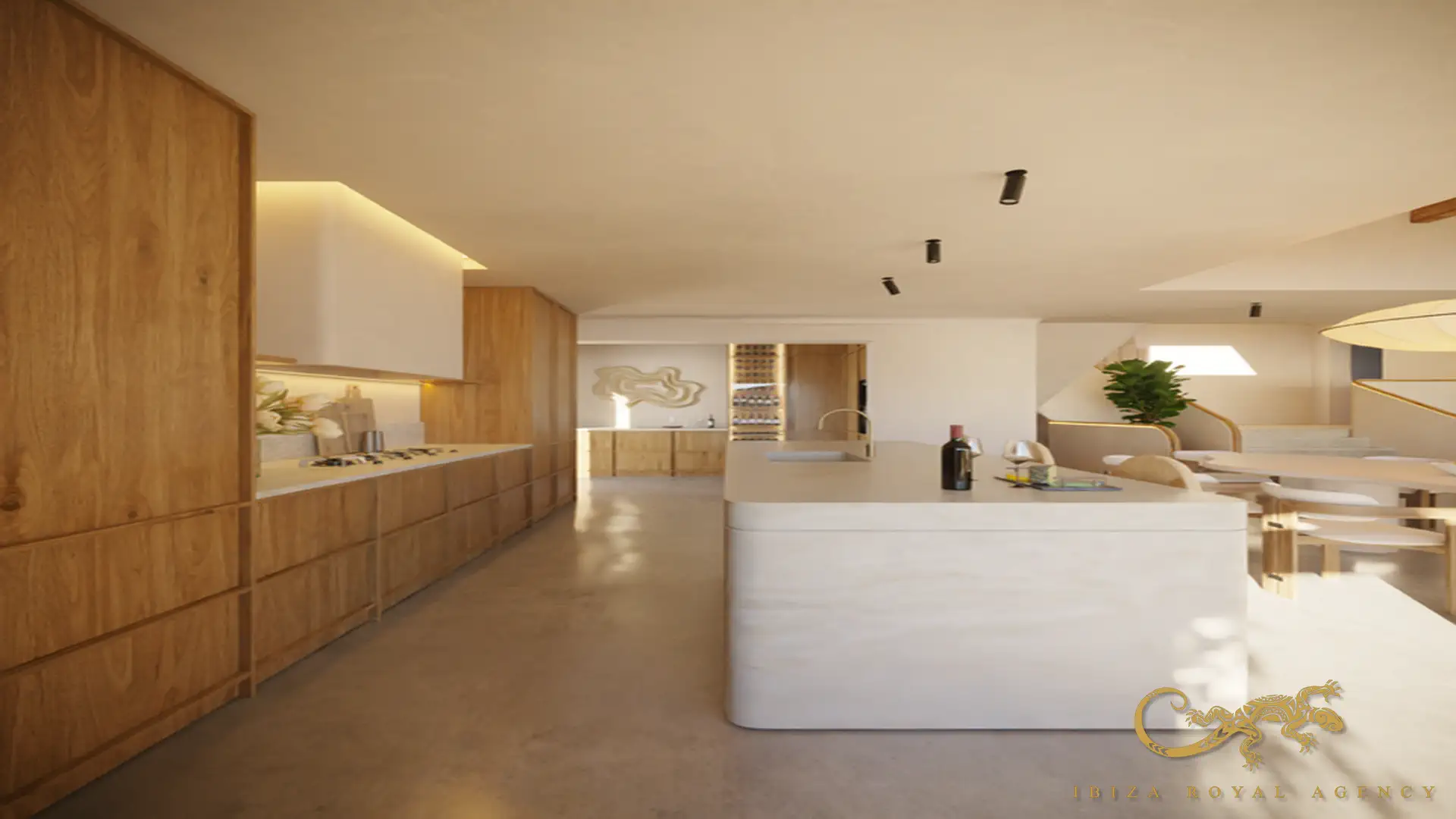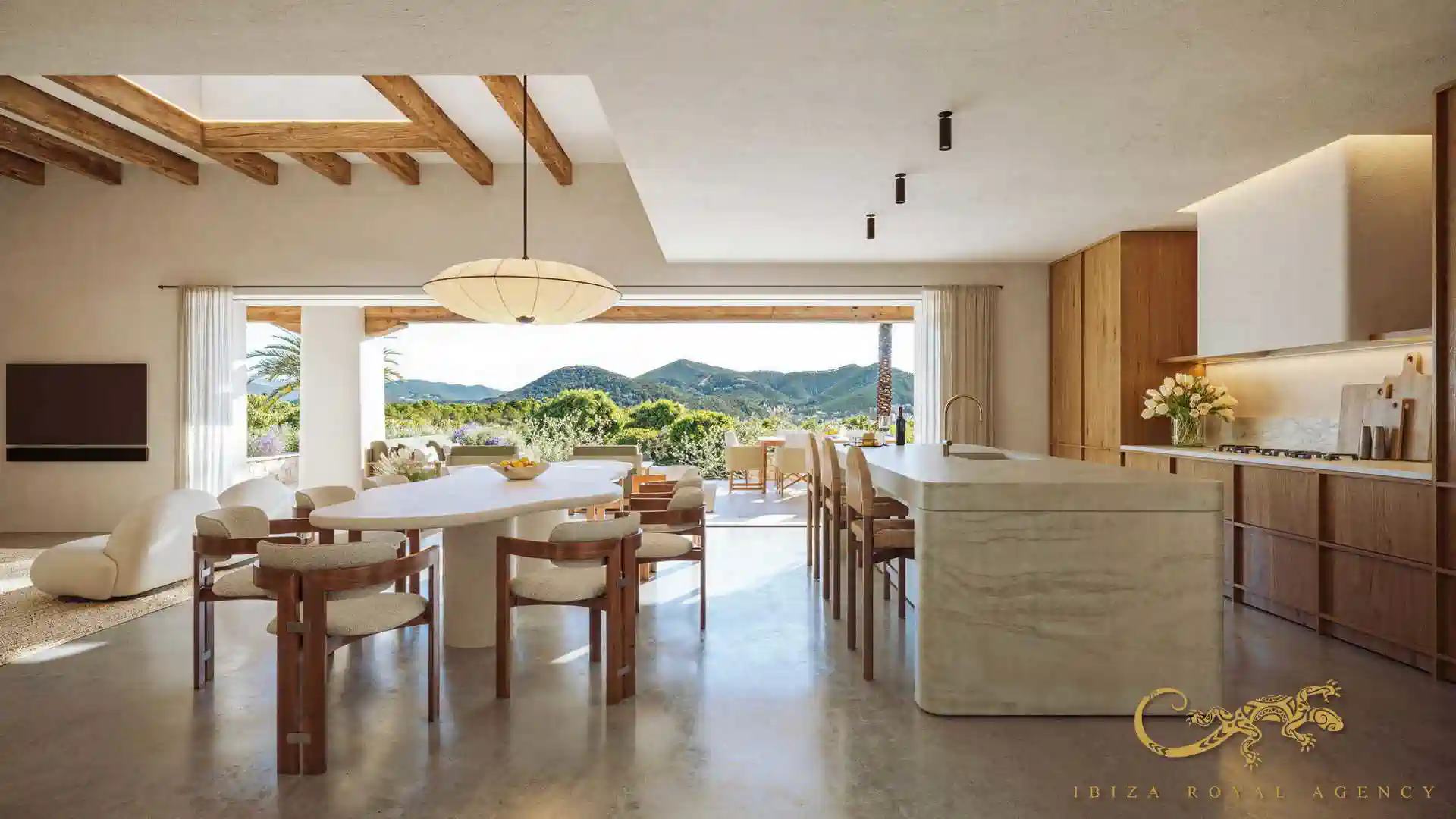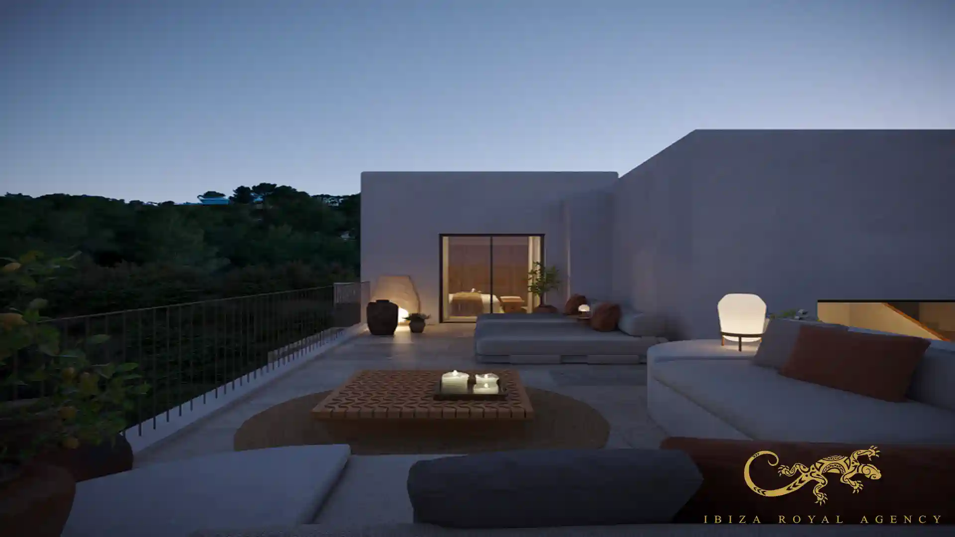 Hier verbindet sich Ruhe mit bester Erreichbarkeit: eingebettet in die Natur mit Blick auf Tal und Golfplatz, zugleich nur wenige Minuten von Santa Eulalia mit Boutiquen, Restaurants und Stränden entfernt, und in etwa fünfzehn Minuten am Flughafen. Morgens kannst du zum Cala Olivera spazieren, einen Kaffee mit Golfplatzblick genießen oder im stillen Ambiente schwimmen gehen.