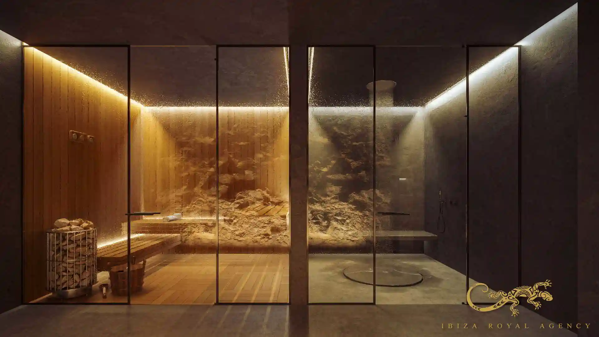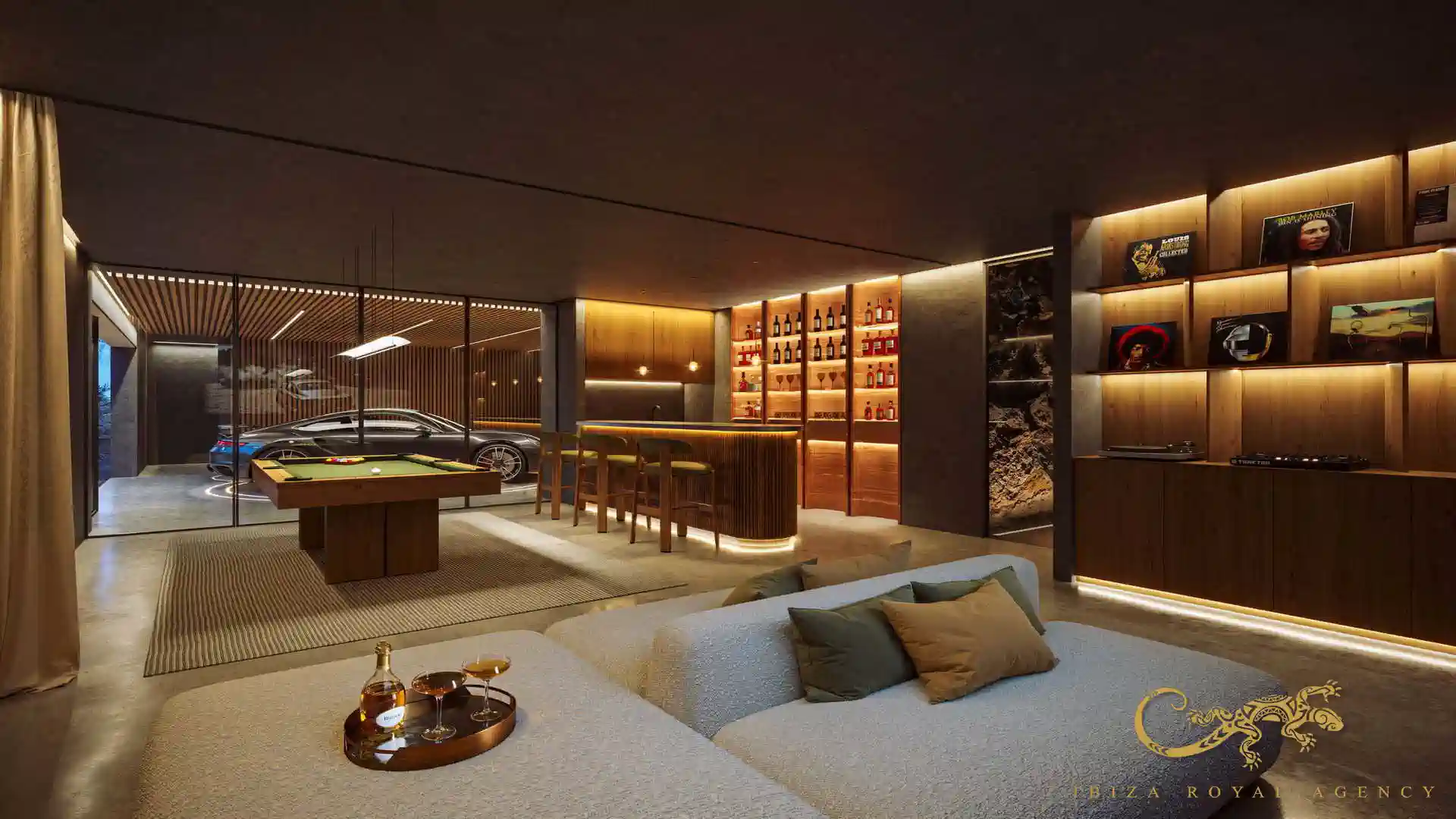 Die Innenräume sind hell und offen gestaltet: hohe Decken, große Glasflächen und nahtlose Übergänge zwischen Innen- und Außenbereich schaffen ein unvergleichliches Freiheitsgefühl. Hochwertige Küche, Wohn- und Essbereiche mit atemberaubender Aussicht, privates Fitnessstudio, Wellnessbereich-Spa, großzügige Garage und ein stilvolles „Man Cave“ für Entspannung und Unterhaltung runden das Angebot ab.