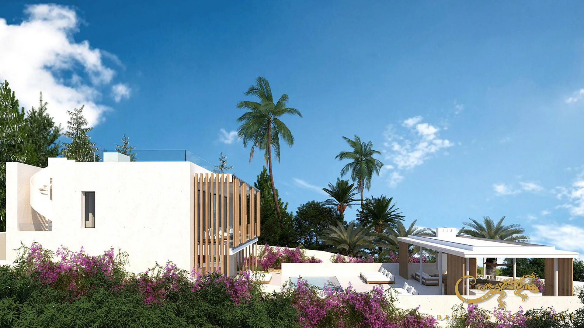 Diese beeindruckende Villa wurde so gestaltet, dass Eleganz, Komfort und Funktionalität miteinander kombiniert werden. Die 500 m² Fläche bieten einen zeitgenössischen Stil, der sich harmonisch in die natürliche Umgebung einfügt und helle, offene Räume schafft, die zur Entspannung einladen.