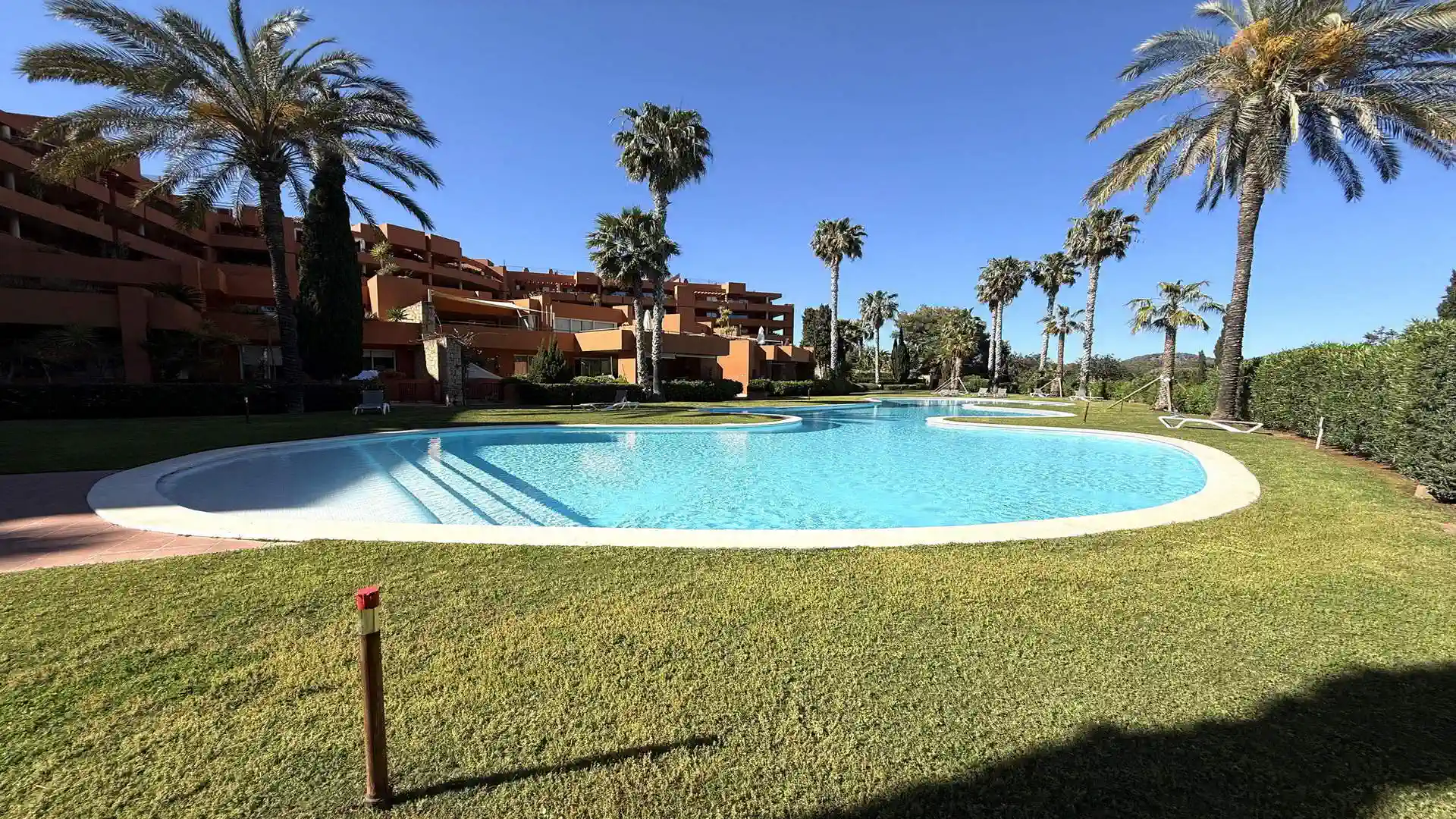 Die Wohnung befindet sich in einer exklusiven privaten Wohnanlage mit 24-Stunden-Sicherheitsdienst, die Ruhe und Sicherheit garantiert. Den Bewohnern steht ein großer Gemeinschaftspool mit gepflegten Gartenanlagen zur Verfügung, ideal zum Entspannen an warmen Tagen. Darüber hinaus verfügt die Anlage über einen voll ausgestatteten Fitnessraum.