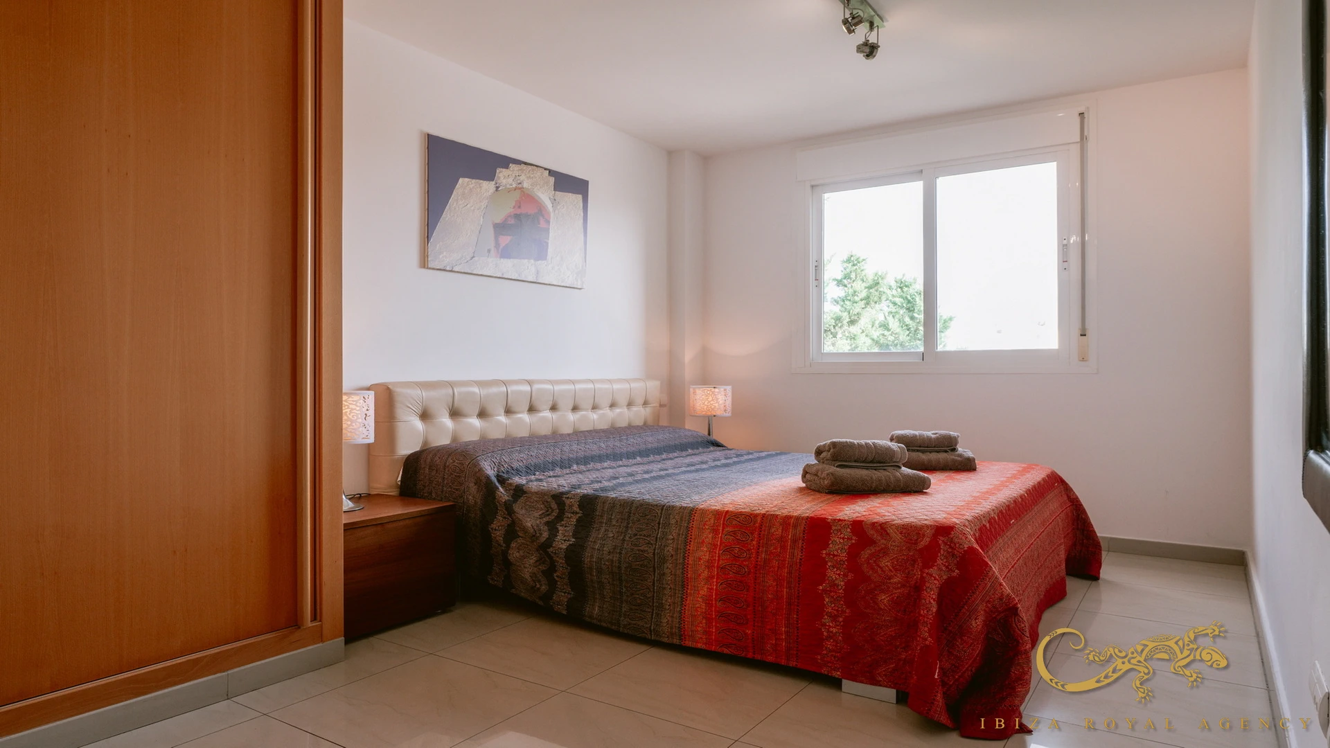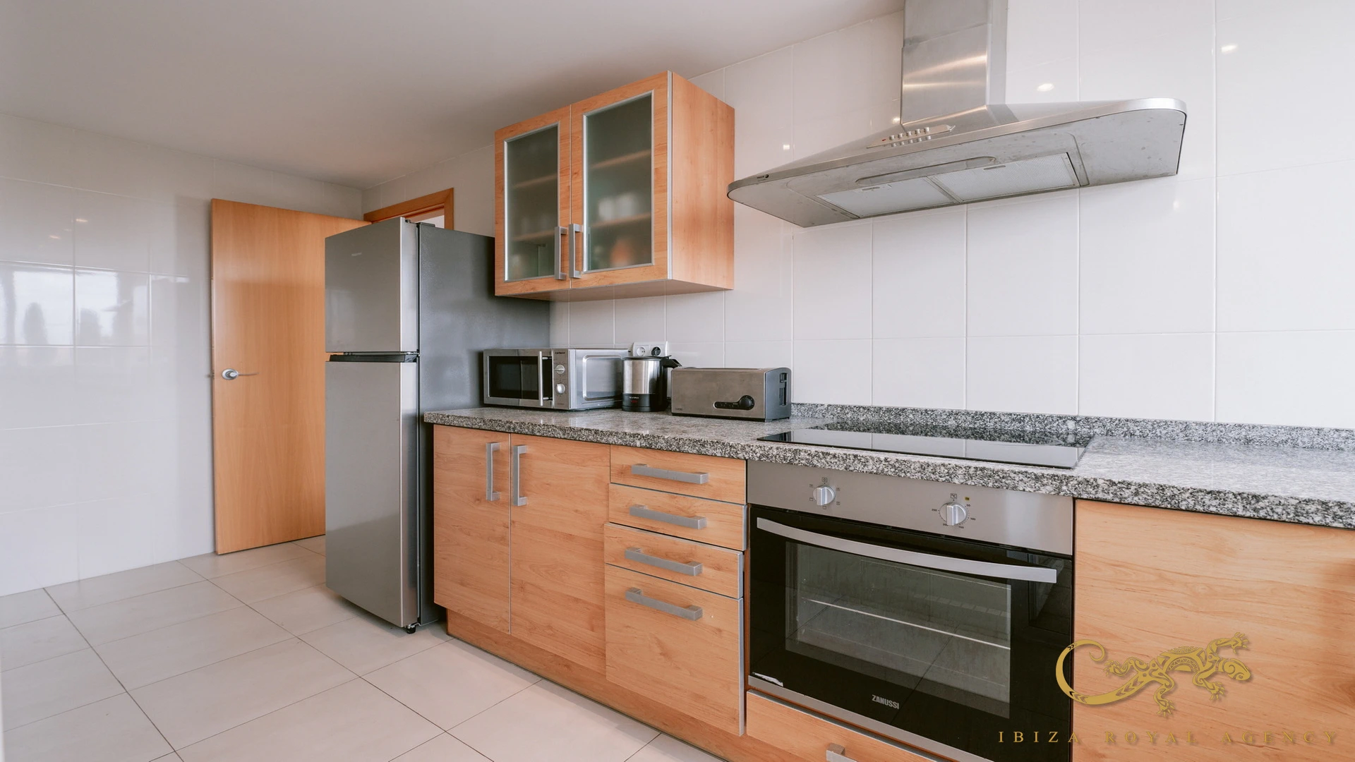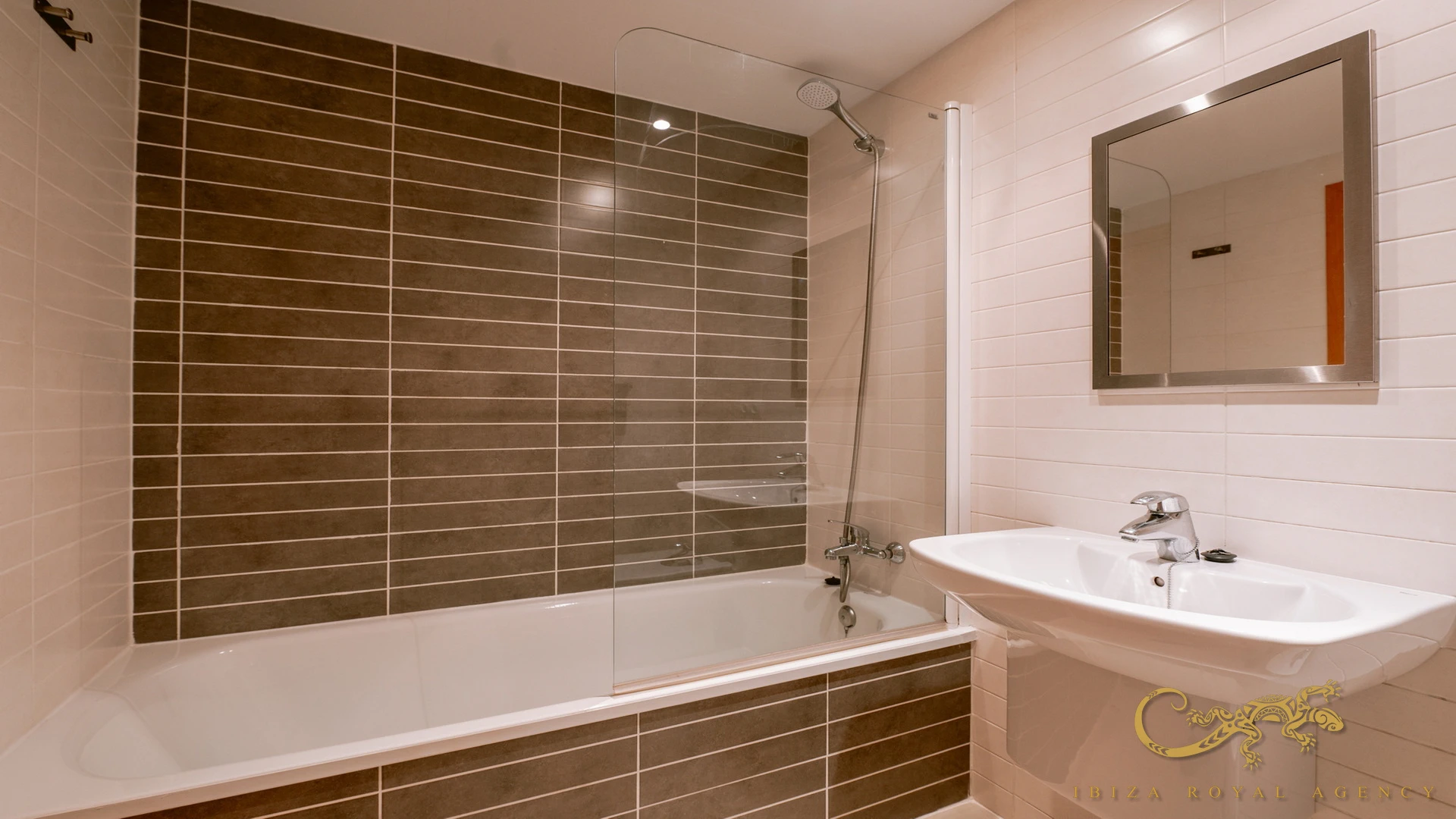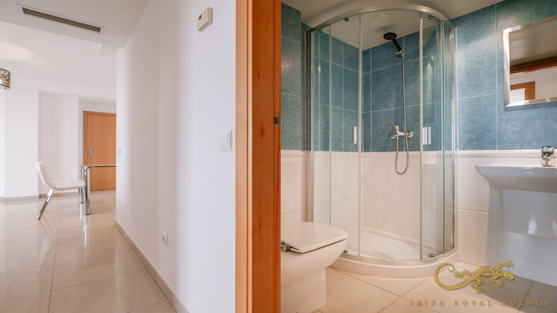Das wahre Highlight dieser Immobilie ist die beeindruckende private Dachterrasse. Mit 90 m² bietet sie einen Panoramablick auf die Stadt Ibiza, das ikonische Dalt Vila und die umliegenden Hügel. Dieser Raum eignet sich perfekt für ein Abendessen im Freien, zum Sonnenbaden oder einfach, um Momente der Ruhe zu genießen. Außerdem gibt es im Komplex einen Gemeinschaftspool, der von sorgfältig gestalteten Gärten mit Palmen umgeben ist – ein Oasis, um an den heißeren Tagen zu entspannen.