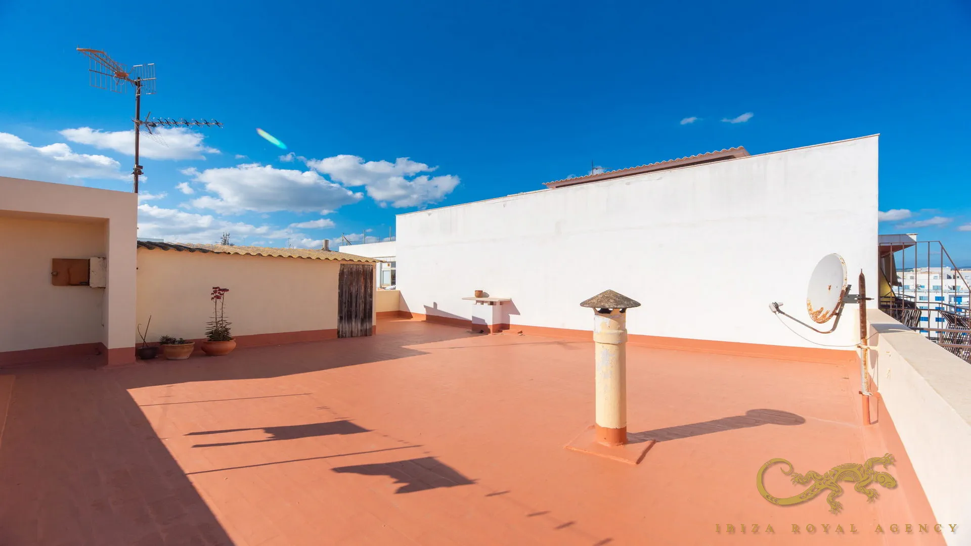 Ein besonderes Highlight dieser Immobilie ist die spektakuläre private 101 m² große Terrasse, die sich direkt über der Wohnung befindet. Dieser Außenbereich bietet unendliche Möglichkeiten: von einer Entspannungszone mit Liegestühlen über einen Essbereich im Freien bis hin zu einem urbanen Garten. Ein echtes Juwel im Zentrum von Ibiza.